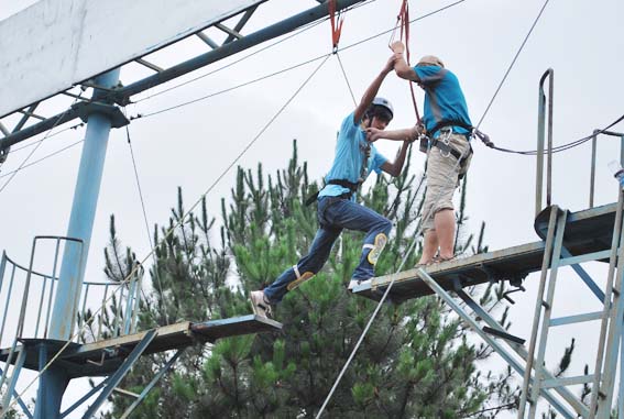 參加訓(xùn)練的64名隊(duì)員(含銷售部的3位隊(duì)員)分成無敵隊(duì)、先鋒隊(duì)、西班牙隊(duì)三個小組,展開了較量。他們經(jīng)歷了“市場迷宮”的考驗(yàn)、感受了“七巧板”營銷游戲的切膚之痛、經(jīng)受了在雨中“斷壁攀巖”的挑戰(zhàn)、分享了“畢業(yè)墻”的感動。在兩天的拓展活動中,東信人吃苦耐勞、勇于拼搏的精神得到了充分地體現(xiàn)。
