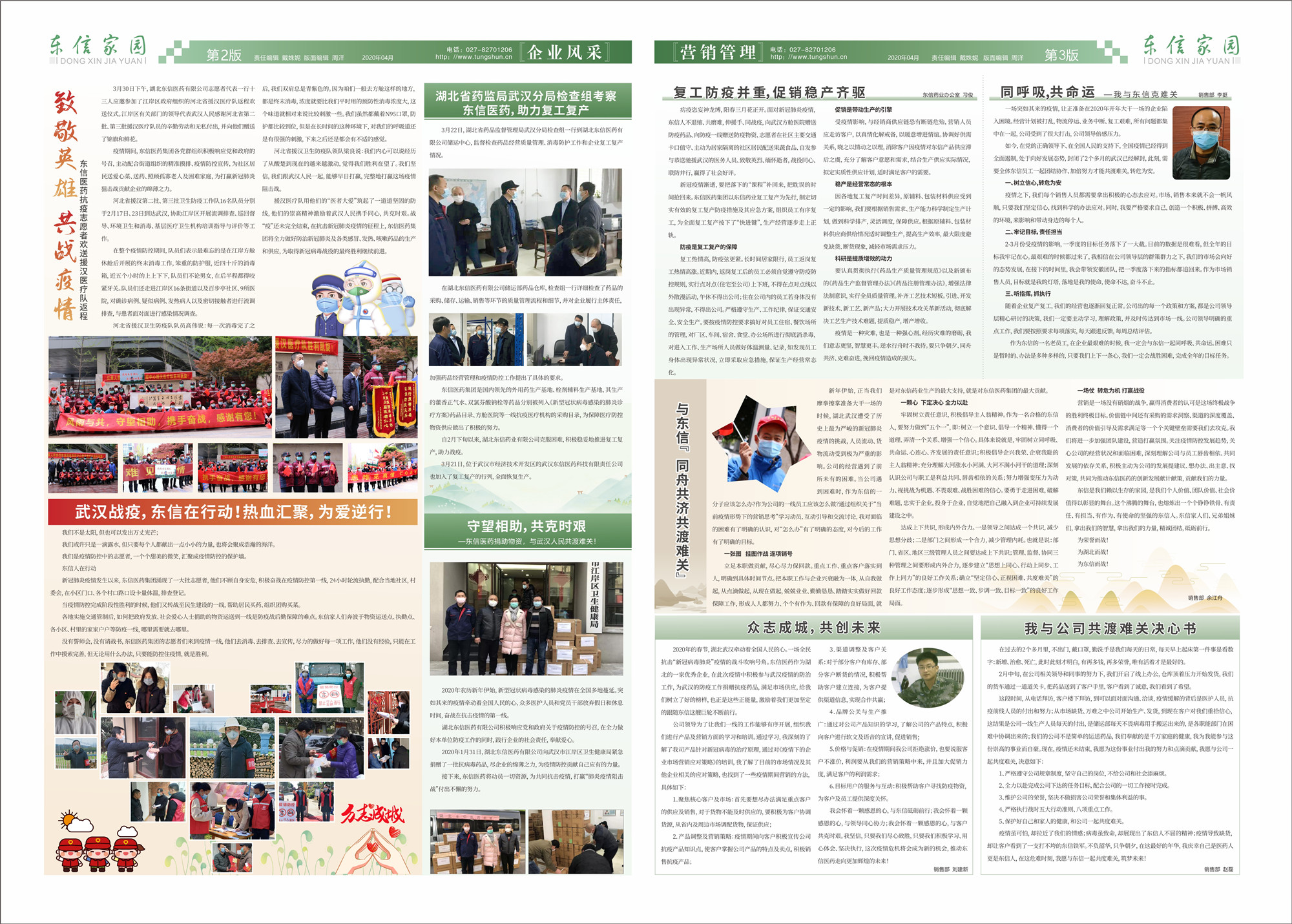 疫情中的醫(yī)藥企業(yè)肩負(fù)著守護(hù)國民健康的歷史使命,為大眾健康提供預(yù)防、治療疾病的產(chǎn)品和服務(wù),我們感到無比光榮。讓我們共同攜手,攻堅克難,只爭朝夕加油干,不負(fù)韶華再向前,我們堅信,在全體東信人的共同努力下,我們一定能轉(zhuǎn)危為機(jī),創(chuàng)造性地完成公司下達(dá)的經(jīng)營目標(biāo)!