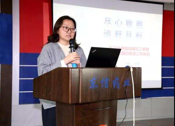 南區(qū)銷售總監(jiān)楊青女士對(duì)銷售部南區(qū)總結(jié)了一至三季度的業(yè)績(jī)達(dá)成情況和完成的各項(xiàng)工作,圍繞四季度和全年的銷售目標(biāo)進(jìn)行工作部署,對(duì)各省區(qū)的目標(biāo)分解、催銷產(chǎn)品的推廣、百日會(huì)戰(zhàn)活動(dòng)的持續(xù)跟進(jìn)、秋冬季活動(dòng)的開(kāi)展等工作做了具體的安排,號(hào)召全體營(yíng)銷將士全力以赴,抓庫(kù)存管理、抓動(dòng)銷、抓團(tuán)隊(duì)建設(shè),沖刺四季度,追趕2020年公司下達(dá)的全年?duì)I銷任務(wù)。