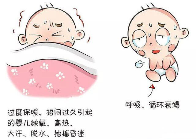 「冬季中暑」也稱嬰兒捂熱綜合癥、蒙被缺氧綜合征等,在寒冷的天氣,家長為了給孩子保暖,在房間內(nèi)有空調(diào)、暖氣的情況下,仍穿著過多的衣服;有些與家長同睡的孩子,家長睡著后無意中使被褥捂蓋孩子的口鼻;更有家長聽信傳統(tǒng)觀念,給發(fā)燒的孩子裹棉被捂汗降溫。