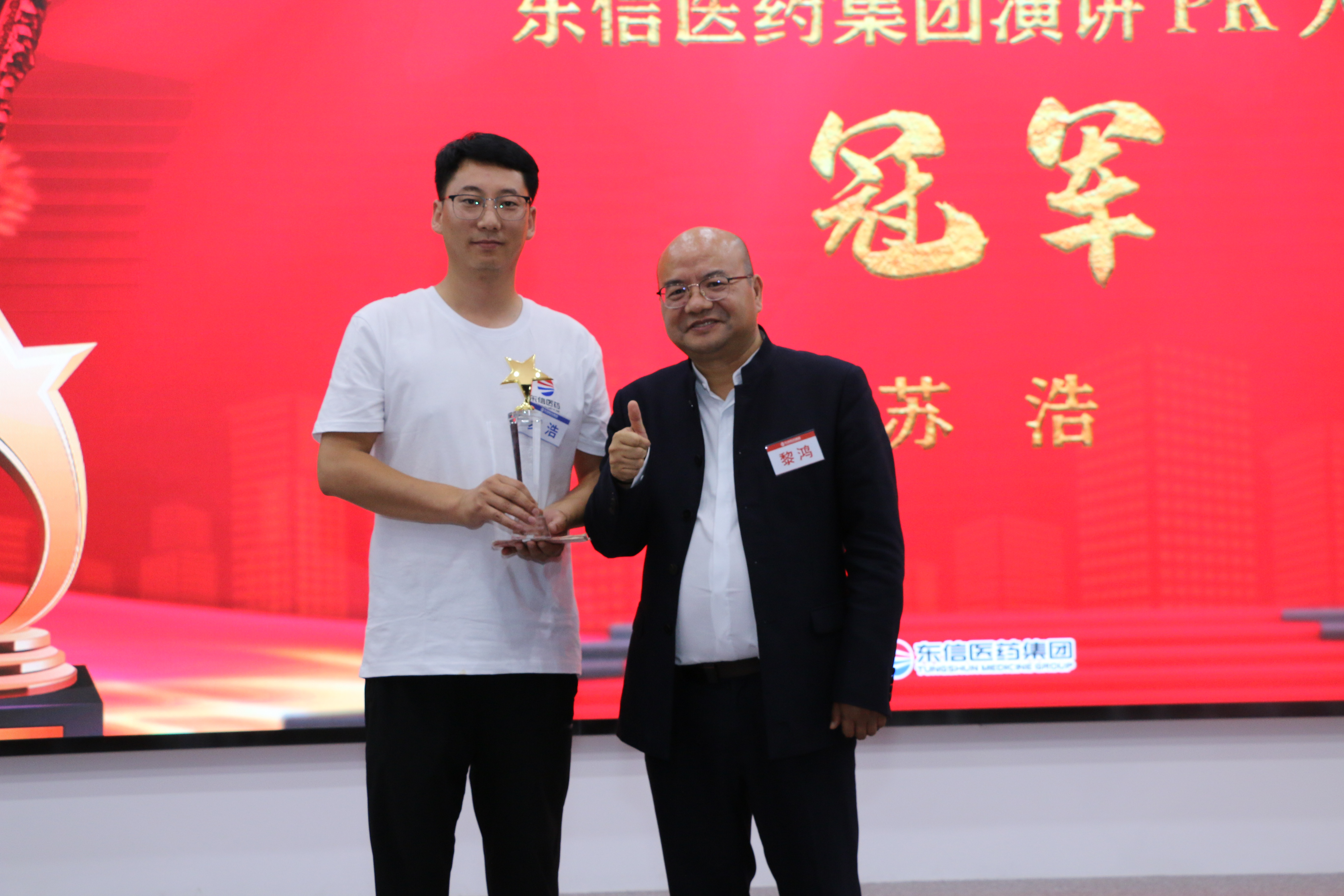 東信醫(yī)藥總經(jīng)理黃少偉為集體二等獎(jiǎng)獲獎(jiǎng)?wù)哳C獎(jiǎng)