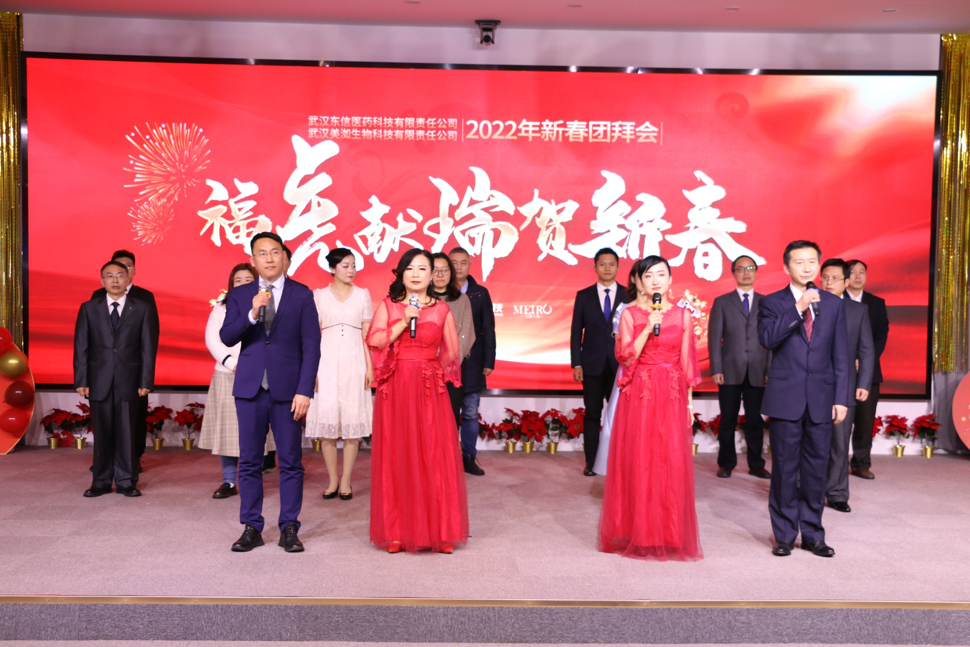 2022年1月27日,武漢東信醫(yī)藥科技有限責(zé)任公司和武漢美洳生物科技有限責(zé)任公司在武漢隆重舉辦“福虎獻(xiàn)瑞賀新春——東信醫(yī)藥科技和美洳生物2022年新春團(tuán)拜會(huì)暨 2021年總結(jié)表彰大會(huì)”,總結(jié)收獲,表彰先進(jìn),共迎新春。
