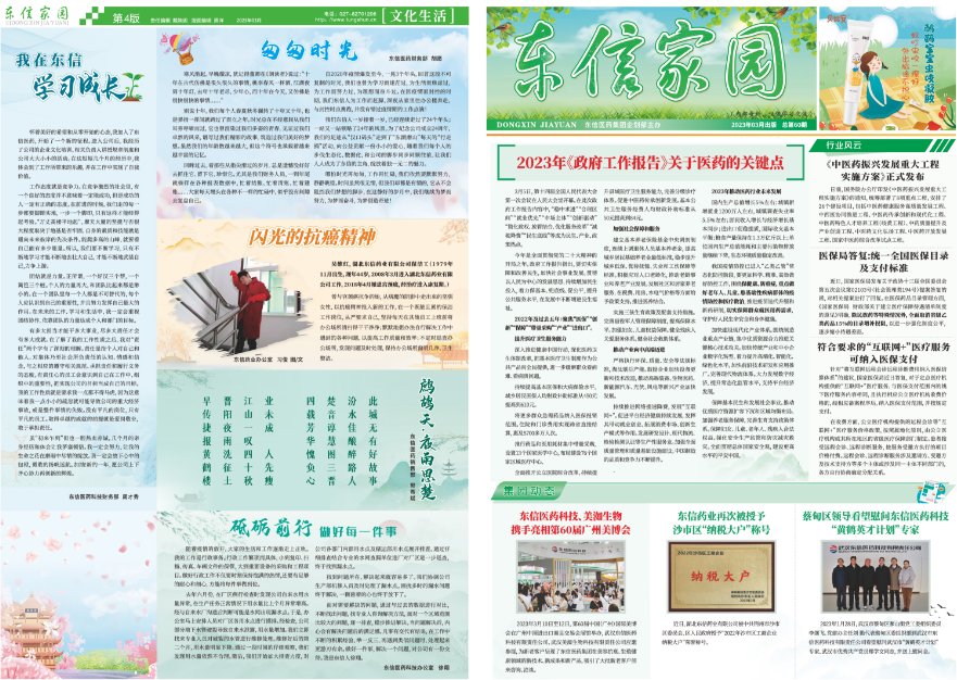 自東信藥業(yè)成立以來,年會上的文藝節(jié)目經(jīng)歷了娛樂性、趣味性、高雅性三個(gè)階段,這也是員工的文化素養(yǎng)的發(fā)展階段。文藝節(jié)目的編排是公司發(fā)展的需要、企業(yè)文化進(jìn)步的需要、員工的精神品味的需要。公司的物質(zhì)文明和精神文明的建設(shè)與發(fā)展、員工的積極向上的風(fēng)貌促成了文藝節(jié)目編排、表演的進(jìn)步,促成了新生事物如雨后春筍般層出不窮,也給我創(chuàng)造了撰寫詩詞散文、新聞稿件,拍攝新聞圖片的機(jī)會。共有52篇新聞文字、圖片稿件在《中國醫(yī)藥報(bào)》《荊州政協(xié)》《荊州日報(bào)》《江漢商報(bào)》等報(bào)刊上發(fā)表,63篇文稿在《東信家園》刊載。如果把這些新聞稿和文稿比喻為人,那么,公司在發(fā)展中涌現(xiàn)出來的新生事物、先進(jìn)人物就是血和肉。沒有這些血和肉,就不可能有那些新聞稿件和文稿見諸報(bào)端,現(xiàn)如今的公司展廳、文化走廊的內(nèi)容就不會那么豐富多彩。我的所有工作成績都植根于東信家園這塊肥沃的土壤,都是淳樸的全體東信員工用心血澆注盛開的艷麗之花。