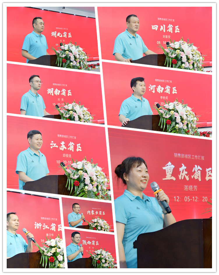 接下來,四川、湖北、河南、湖南、江蘇、浙江、廣東、河北、云南、重慶、甘青寧、陜西、遼寧、內(nèi)蒙古等二十六個省區(qū)經(jīng)理對2023年上半年的營銷工作進行了全面總結(jié),對各地市場的具體情況進行了深度剖析,并對下半年的重點工作進行了規(guī)劃和部署。