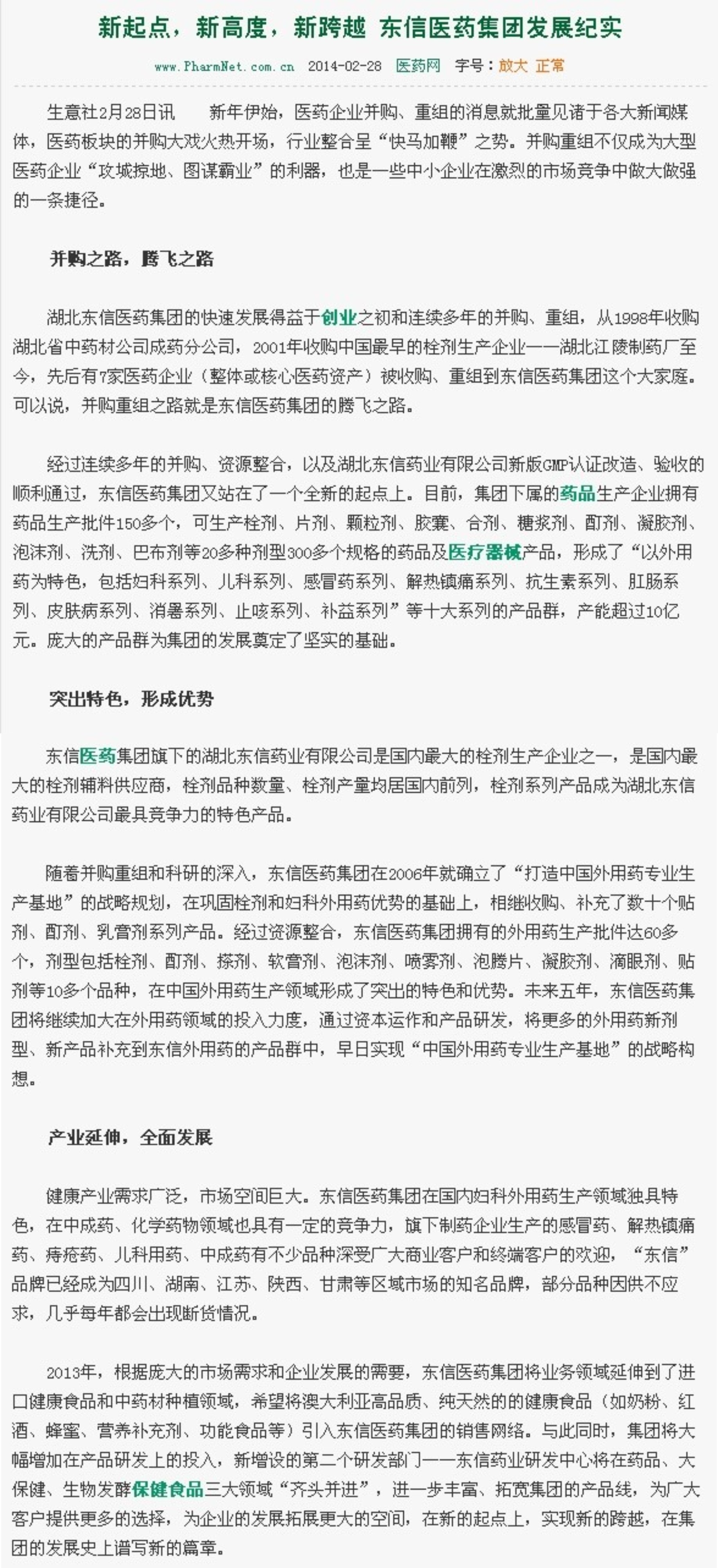 媒體報道:東信醫(yī)藥集團(tuán)發(fā)展紀(jì)實