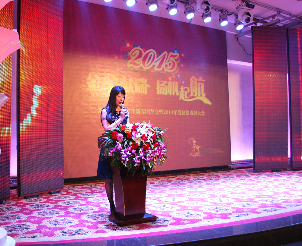 下午16:00時許,大會在財務(wù)部帶來的全民快樂的開場舞——《小蘋果》的歡快氛圍中拉開序幕。公司董事長田南希女士向大會致詞,歡迎沙市到來的周書記以及凱旋歸來的營銷將士和參加新春團(tuán)拜會的東信同仁,向全體東信人致以新年的祝福。田董對公司2014年的工作和榮譽(yù)進(jìn)行了總結(jié),對2015年公司各項工作的開展提出了要求,并勉勵全體東信員工團(tuán)結(jié)努力,繼續(xù)在“全員營銷”的工作理念指導(dǎo)下,出色完成公司2015年的目標(biāo)。