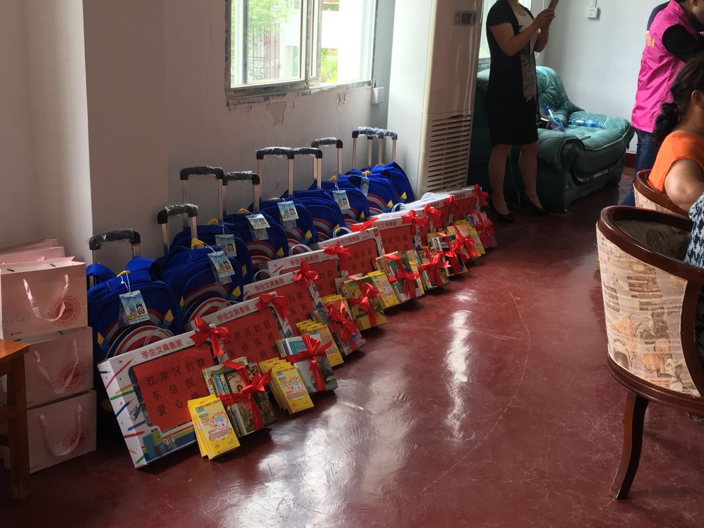隨著外出務(wù)工的人員逐漸增多,“留守兒童”這一特殊群體也越來越受到黨和政府的高度重視,為解除外出務(wù)工人員的后顧之憂,為孩子們營造一個健康成長的學(xué)習(xí)生活環(huán)境。在第69個“六一”國際兒童節(jié)到來之際,東信醫(yī)藥集團(tuán)與江岸區(qū)婦聯(lián)、區(qū)法院、區(qū)民政局、區(qū)媒體中心和區(qū)勞動街等單位及轄區(qū)巾幗志愿者共同來到黃陂區(qū)王家河萬壽寺村看望慰問貧困留守兒童。