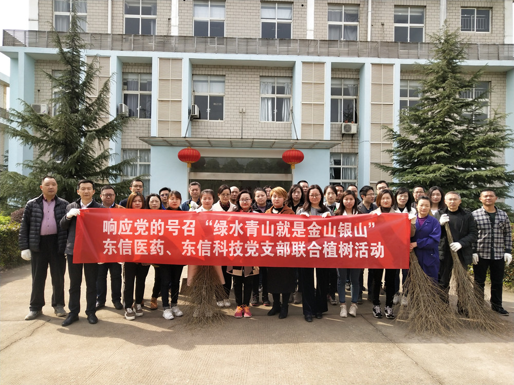 為深入學(xué)習(xí)貫徹黨的十九大精神,切實(shí)履行習(xí)主席提出的堅(jiān)持人與自然和諧共生,堅(jiān)持節(jié)約資源和保護(hù)環(huán)境的基本國(guó)策, 3月23日,東信醫(yī)藥黨支部、武漢東信醫(yī)藥科技黨支部聯(lián)合舉行:響應(yīng)黨的號(hào)召“綠水青山就是金山銀山”黨建活動(dòng)。黨員代表們來(lái)到武漢東信醫(yī)藥科技有限責(zé)任公司,在工業(yè)園區(qū)進(jìn)行植樹(shù)、打掃園區(qū)衛(wèi)生活動(dòng)。